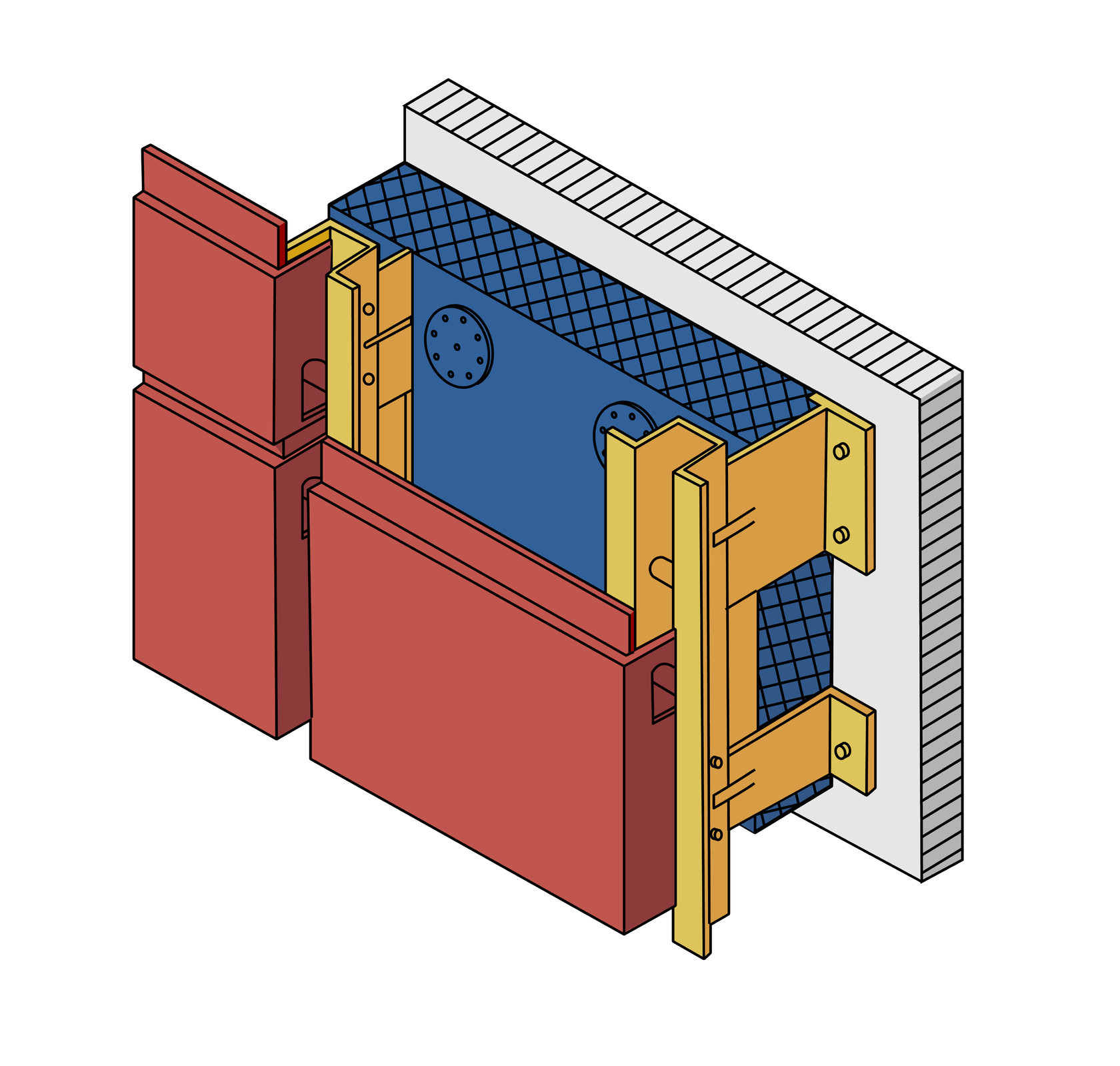 Клинкерная плитка Хорошо известный всем отделочный материал, для применения которого в навесных вентилируемых фасадах производят плитки специальной формы, у которых сзади имеются пазы для их установки в горизонтальные направляющие фасадной подсистемы. Плитки могут использоваться на фасаде как с затиркой швов так и без. |